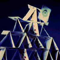 "I know!" he thought to himself. "I will build a house of cards around my house of cards. That way it will be protected against the wind."